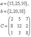 Задача 1. Из трех холодильников Ai, i=1..3, вмещающих мороженную рыбу в количествах ai т, необходимо последнюю доставить в пять магазинов Bj, j=1..5 в количествах bj т. Стоимости перевозки 1т рыбы из холодильника Ai в магазин Bj заданы в виде матрицы Cij, 3x5.