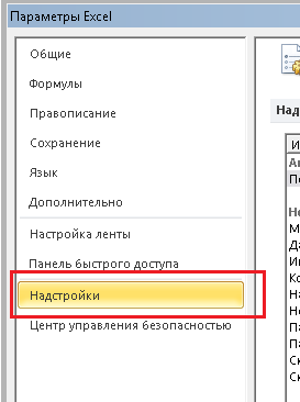 В открывшемся меню необходимо выбрать пункт "Надстройки":