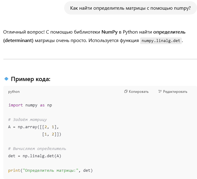 Если вы изучаете математику вместе с Python, ChatGPT поможет вам на каждом шаге: от написания кода до объяснения, как работает тот или иной алгоритм. Примеры кода для выполнения математических операций, графиков и вычислений — все это легко доступно с помощью ИИ.