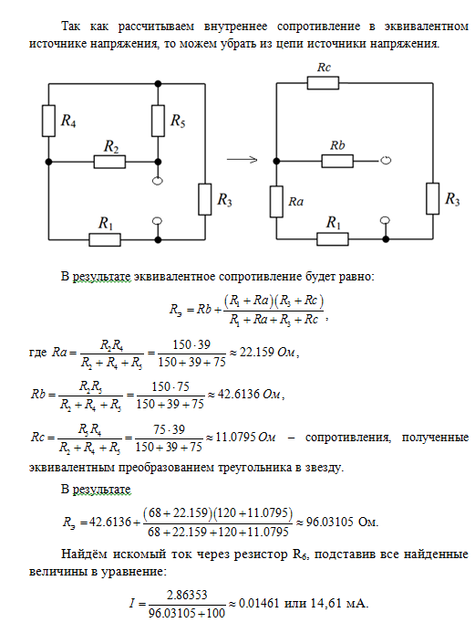 ток через сопротивление $R_6$ методом эквивалентного источника.