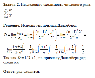 - Исследование числовых рядов на сходимость (признаки Даламбера, Коши, сравнения, интегральный и другие)