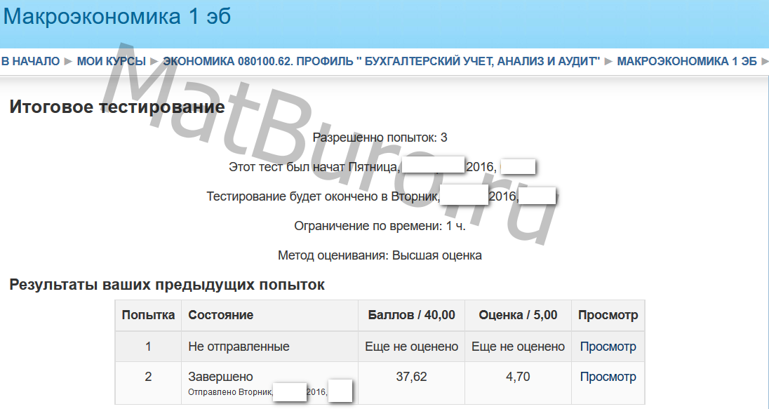 Желательно прислать: ссылку на сайт вуза, названия тестов/предметов (можно скриншотом), число вопросов в тесте, количество попыток, желаемый балл и сроки. Чем точнее информация, тем быстрее оценка и сдача.