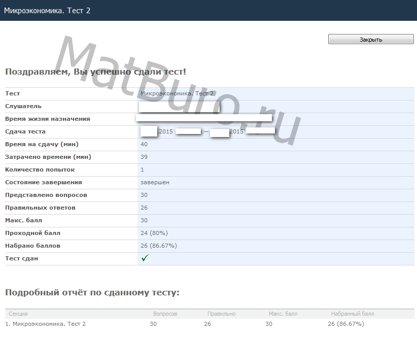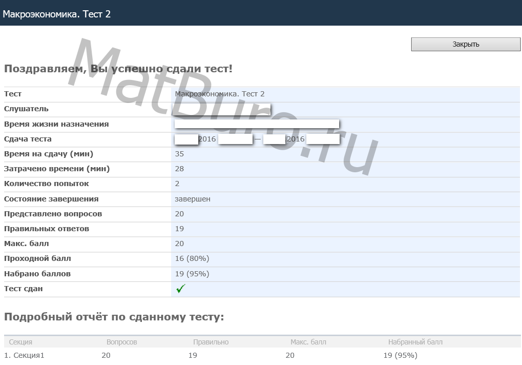 - Марина Работа выполнена в день оформления заявки: быстро, качественно и на высоком уровне.Тест сдан досрочно. Результат - отлично. Обращайтесь за помощью в "MatBuro" - не пожалеете. Побольше бы таких грамотных специалистов.С глубоким уважением, Марина.