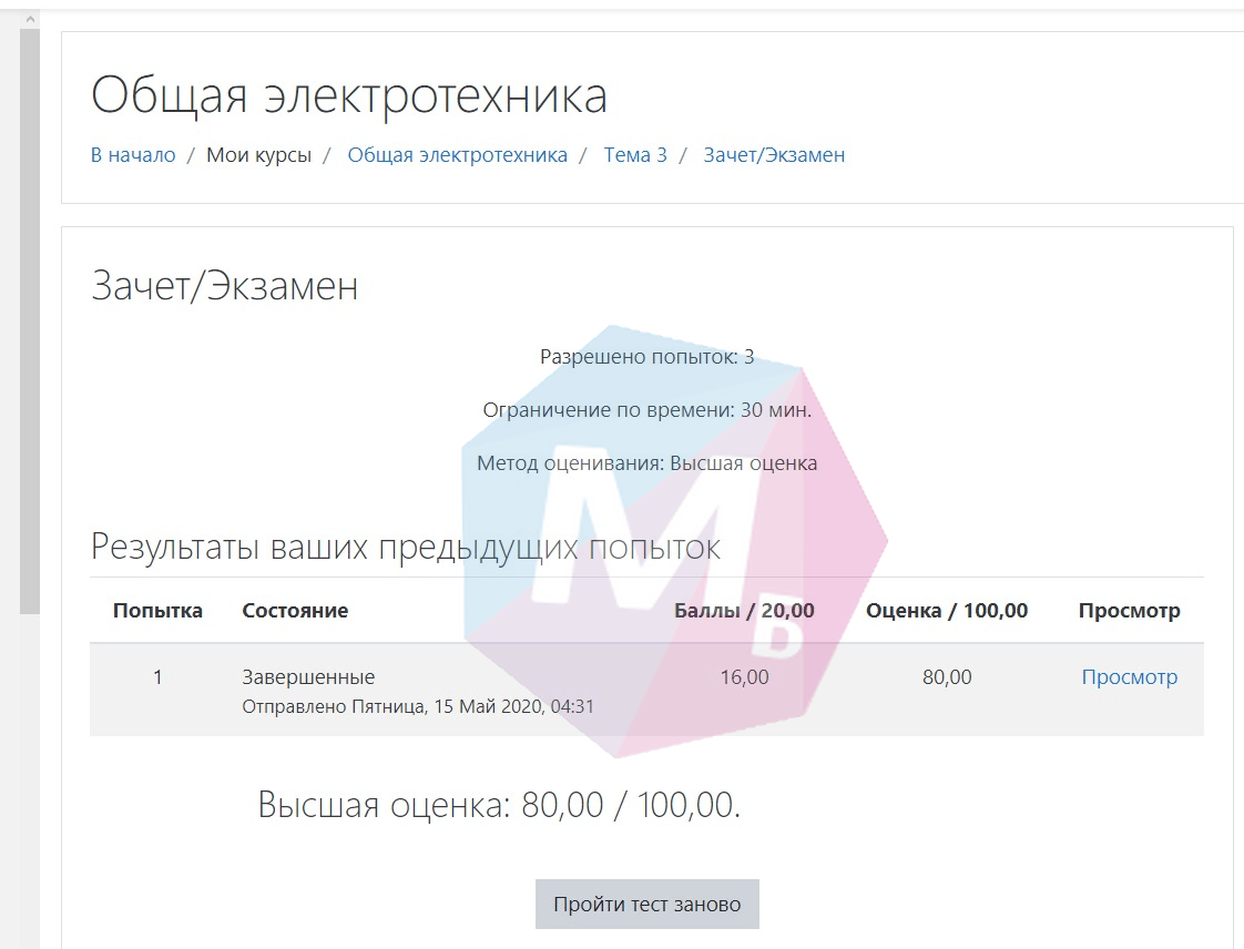- Высокие баллы. Сдаём онлайн-тесты, зачёты и экзамены с результатом 75–100%.
