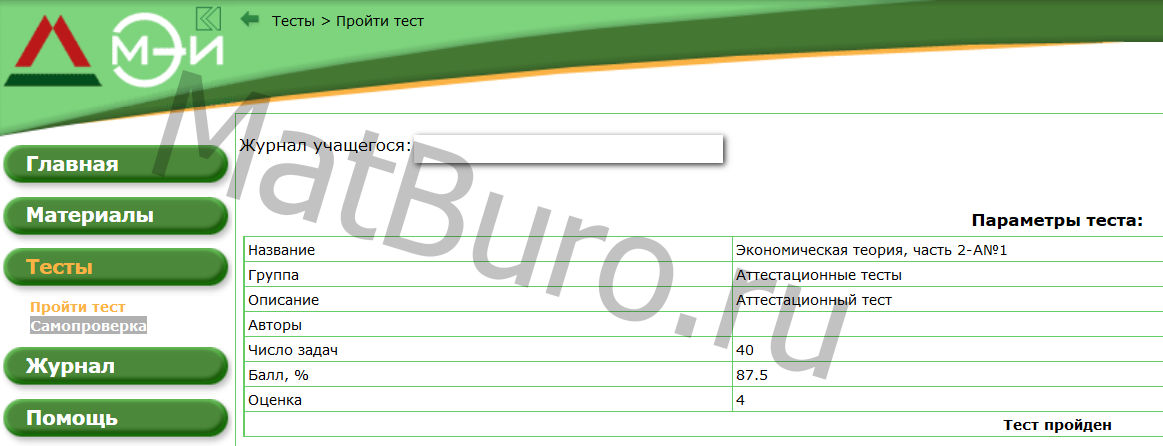 МатБюро помогает студентам в сдаче дистанционных тестов по экономической теории, экономическому анализу хозяйственной деятельности предприятия. Поможем сдать тренировочные и итоговые тесты, дистанционные экзамены и успешно закрыть сессию.