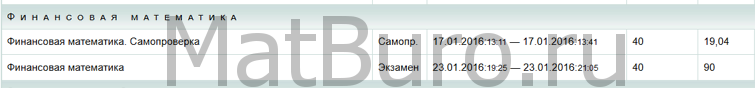 >МатБюро окажет консультацию по сдаче дистанционных тестов по финансовой математике. Вы сможете сдать тренировочные и итоговые тесты, дистанционные экзамены и успешно закрыть сессию.
