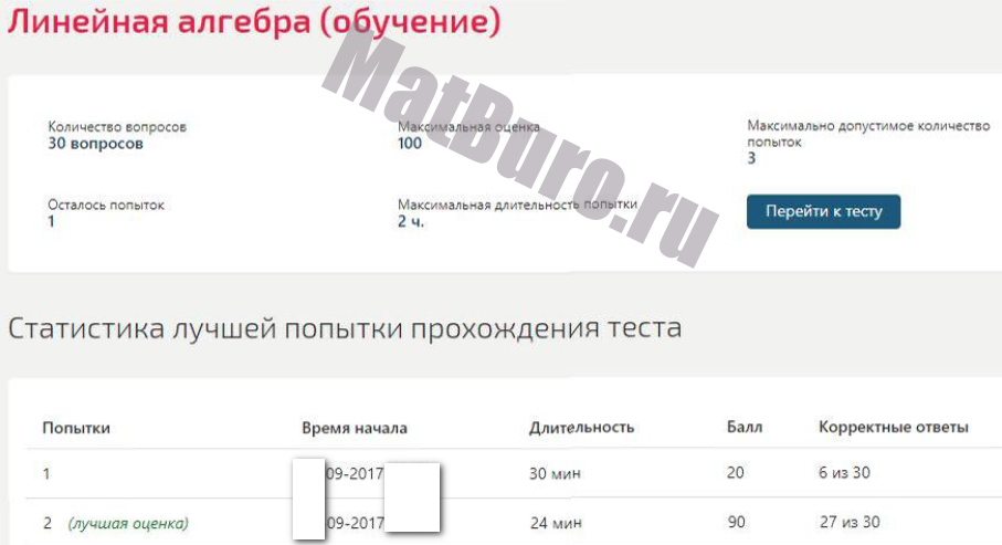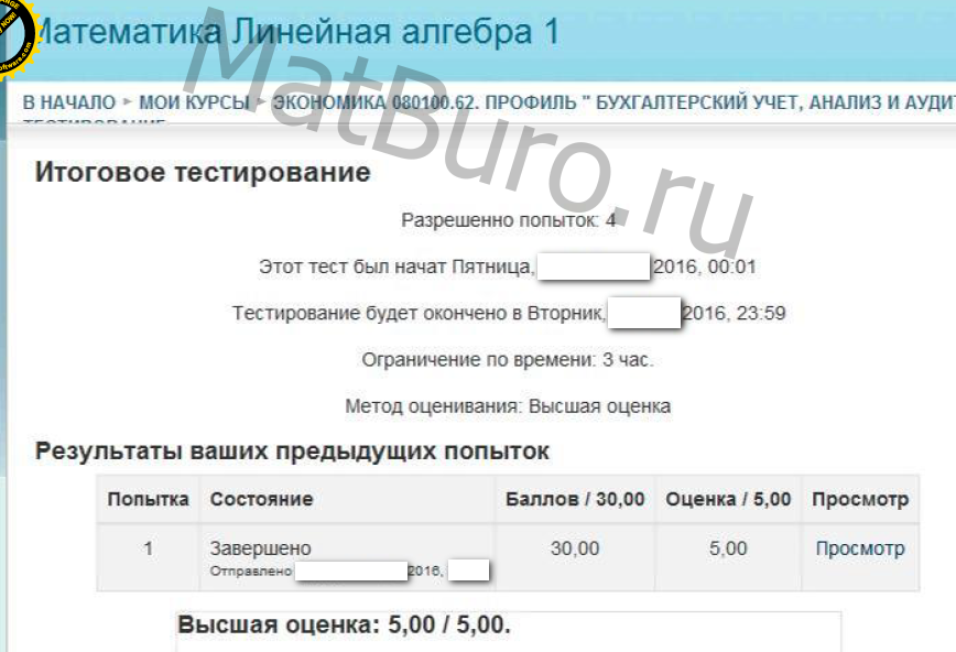 Желательно прислать: ссылку на сайт вуза, названия тестов/предметов (можно скриншотом), число вопросов в тесте, количество попыток, желаемый балл и сроки. Чем точнее информация, тем быстрее оценка и сдача.