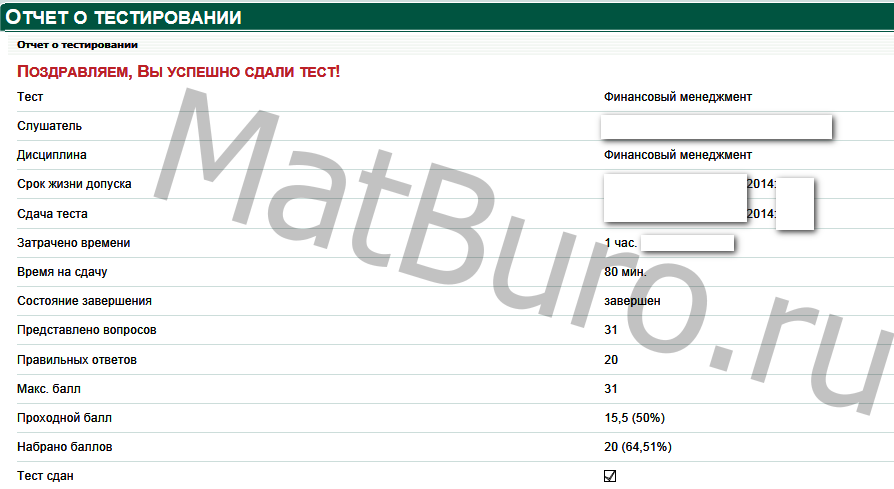 - Антон Обратился за помощью со сдачей экзамена онлайн по финансовому менеджменту. Сдали хорошо, оперативно. Остался доволен. Спасибо!