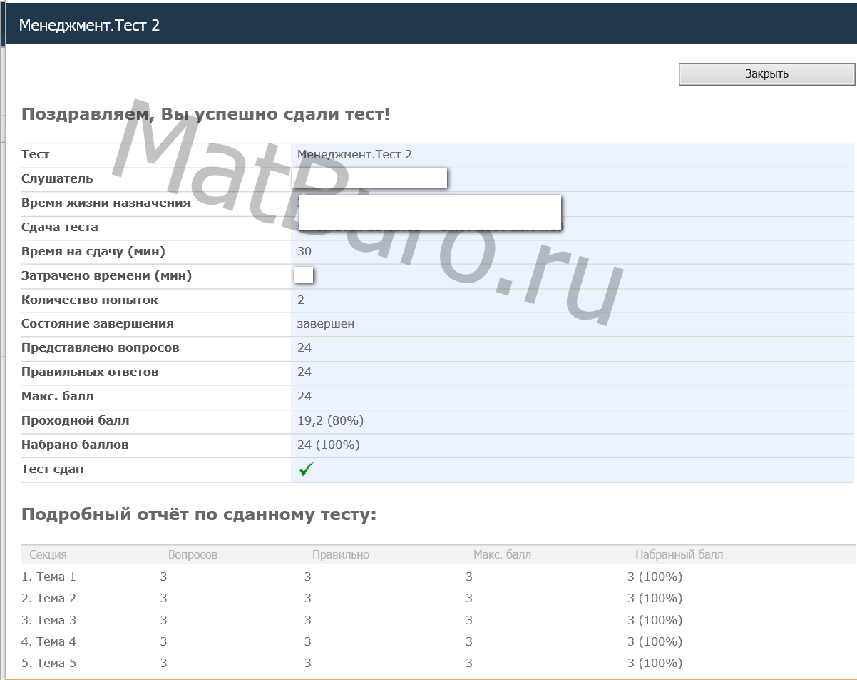 - Отчёт о сдаче. Присылаем скриншоты результатов; ответы — по запросу, с доплатой.