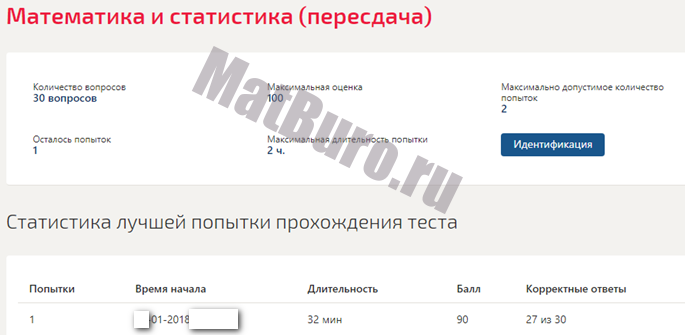 Итоговый тест - 30 вопросов Время на сдачу теста - 40 минут Три попытки на предмет Засчитывается лучшая попытка Требуется идентификация по фото перед сдачей |