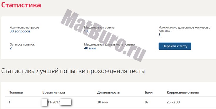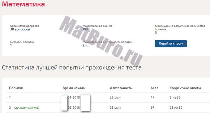 Итоговый тест - 30 вопросов Время на сдачу теста - 40 минут Три попытки на предмет Засчитывается лучшая попытка Требуется идентификация по фото перед сдачей |