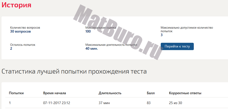Мы не передаём ваши данные третьим лицам. На время прохождения теста лучше не заходить в систему с других устройств, чтобы не прервать сессию.