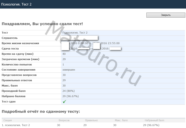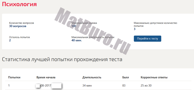 МатБюро поможет пройти тесты по психологии и педагогике. Вы сможете сдать вступительные, тренировочные и итоговые тесты, дистанционные экзамены, контрольные и практикумы.