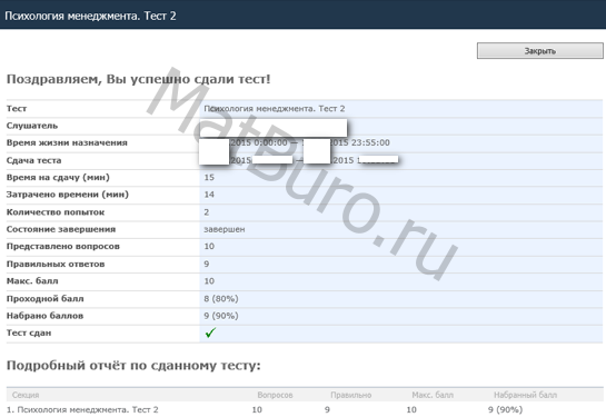 - Марина Работа выполнена в день оформления заявки: быстро, качественно и на высоком уровне.Тест сдан досрочно. Результат - отлично. Обращайтесь за помощью в "MatBuro" - не пожалеете. Побольше бы таких грамотных специалистов.С глубоким уважением, Марина.