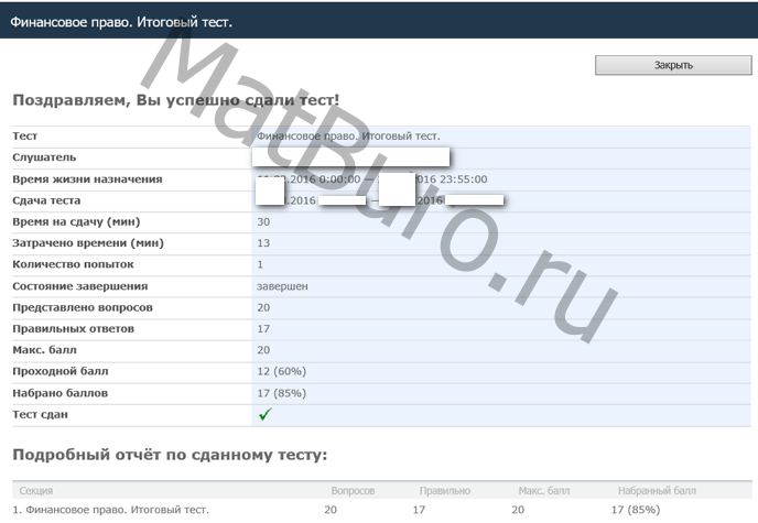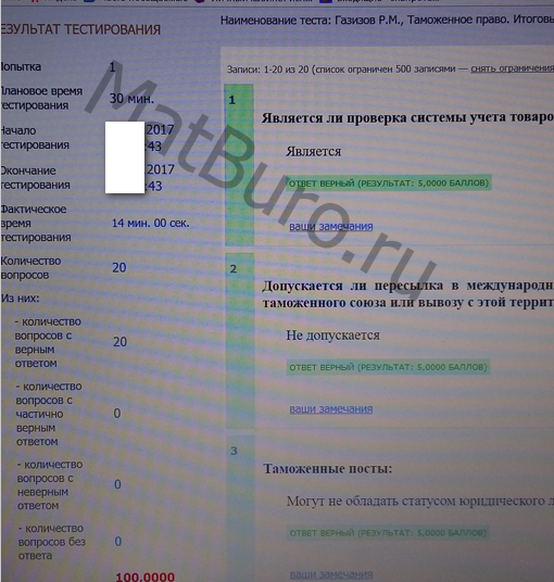 - Марина Работа выполнена в день оформления заявки: быстро, качественно и на высоком уровне.Тест сдан досрочно. Результат - отлично. Обращайтесь за помощью в "MatBuro" - не пожалеете. Побольше бы таких грамотных специалистов.С глубоким уважением, Марина.