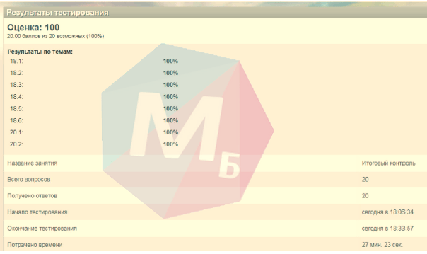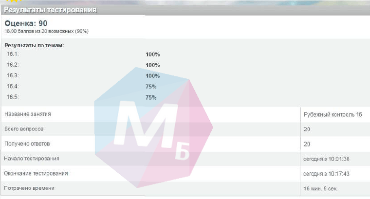- Высокие баллы. Обычная оценка за тест - не меньше 75% (в баллах - 4-5 баллов: хорошо/отлично).