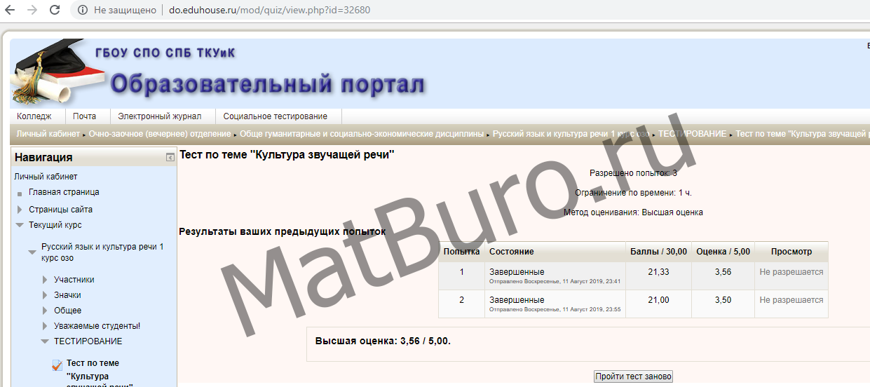 Желательно прислать: ссылку на сайт вуза, названия тестов/предметов (можно скриншотом), число вопросов в тесте, количество попыток, желаемый балл и сроки. Чем точнее информация, тем быстрее оценка и сдача.