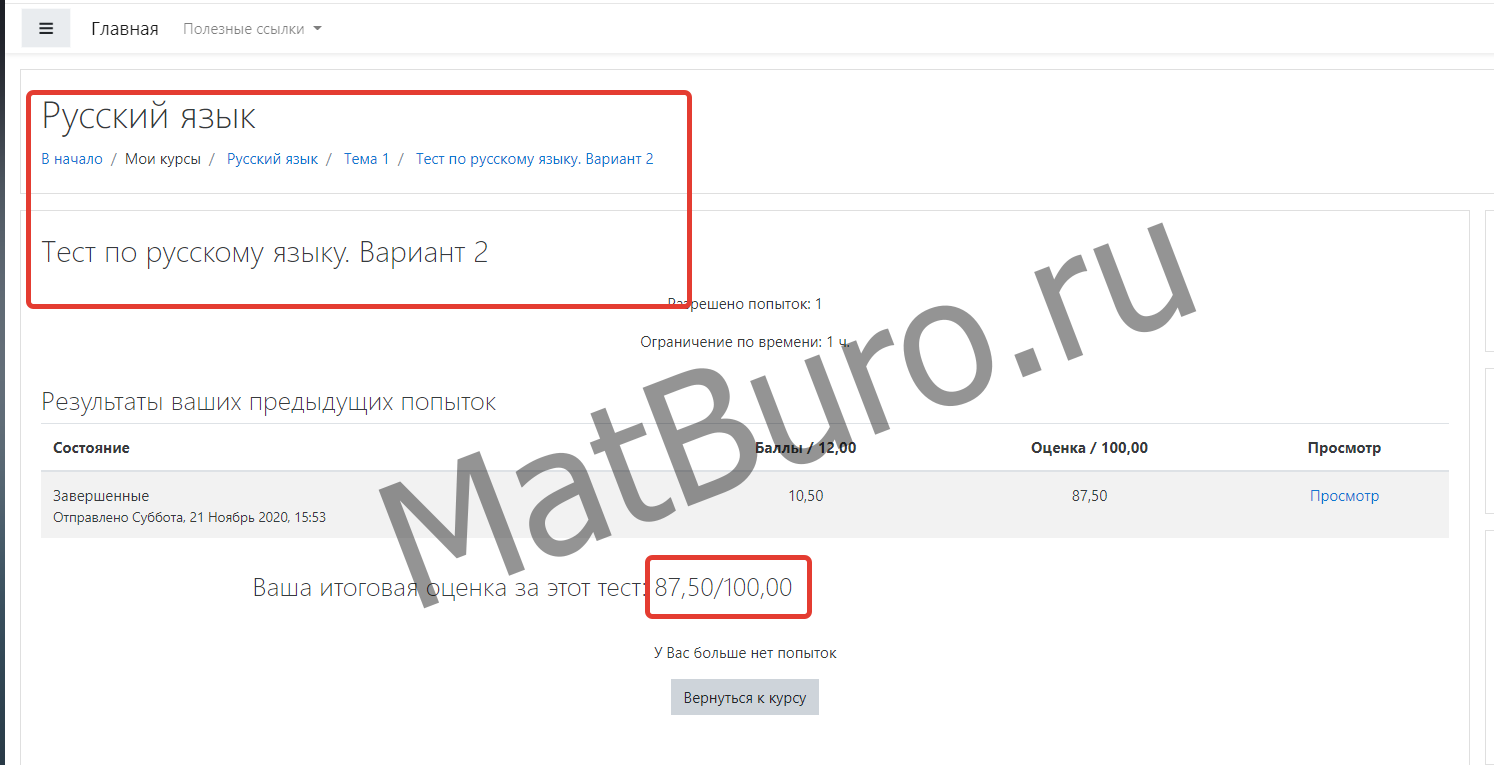 - Высокие баллы. Обычная оценка за тест - не меньше 75% (в баллах - 4-5 баллов: хорошо/отлично).