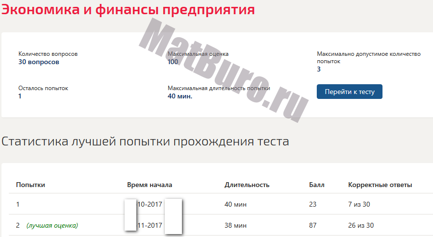 Желательно прислать: ссылку на сайт вуза, названия тестов/предметов (можно скриншотом), число вопросов в тесте, количество попыток, желаемый балл и сроки. Чем точнее информация, тем быстрее оценка и сдача.