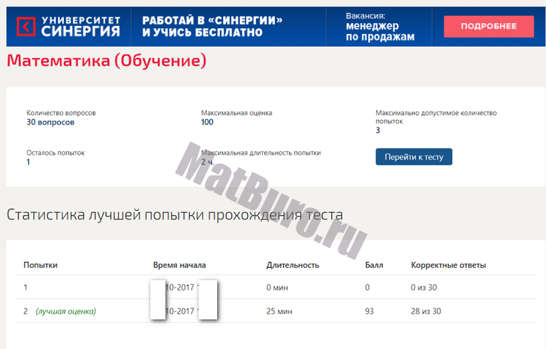 - Тест по математике с ответами, Синергия/МТИ, 97%