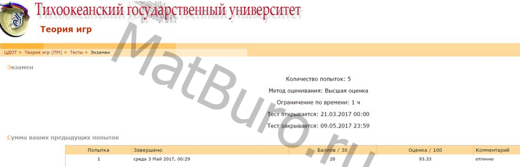 Сдача теста по теории игр с вопросами и ответами, ОмГУ